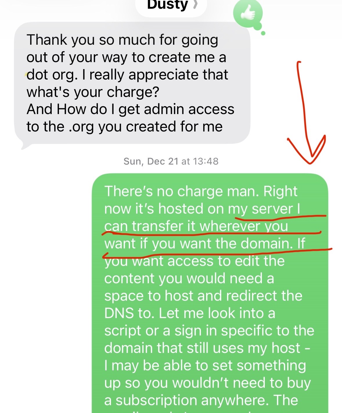 Well, let's start with the fact you were never asked to create a website for my organization.And let's end with the fact all I want is the domain that 's it.That's all